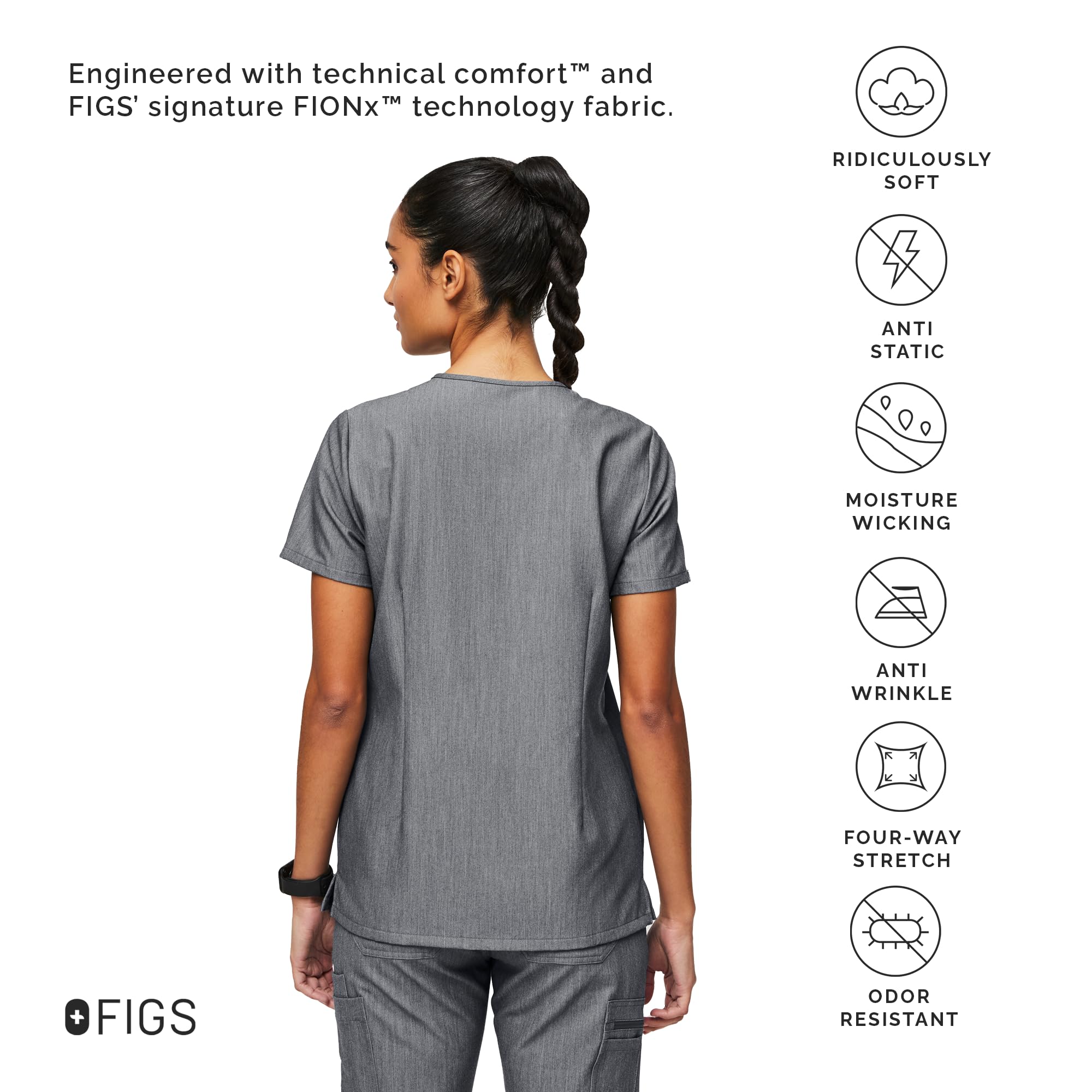 SUPERIOR FIT AND DURABILITY — Made with FIGS’ proprietary FIONx fabric, these stylish women’s scrub tops were designed with durable four-way stretch fabric, moisture-wicking, anti-wrinkle, and ridiculously soft properties. Enjoy ultimate comfort wearing this stretchy women’s medical scrub top.