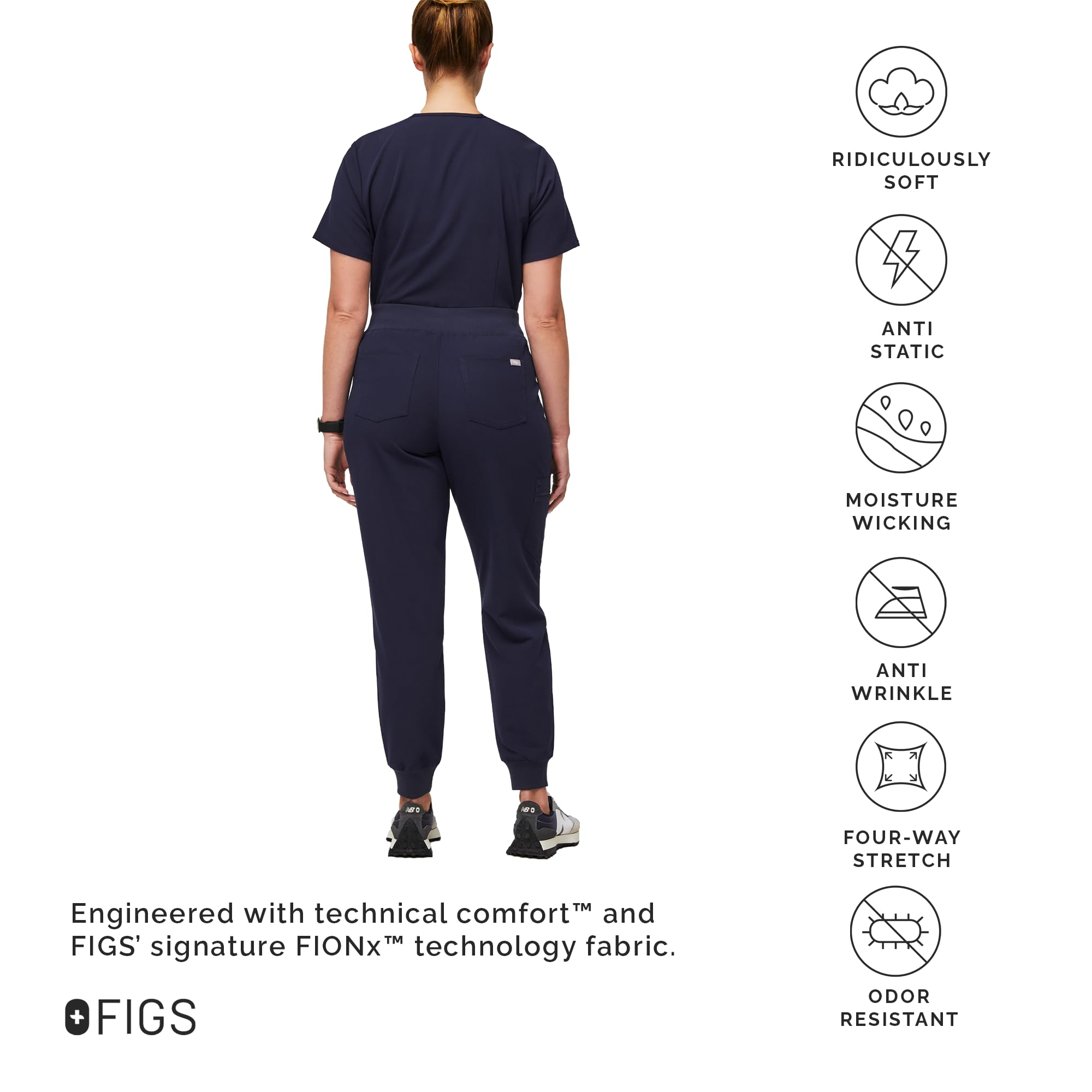 - UNMATCHED COMFORT — Designed with our ridiculously soft FIONx fabric and featuring Silvadur technology for odor protection, FIGS women’s high-waisted scrub jogger set will provide you unmatched comfort, function, and style.