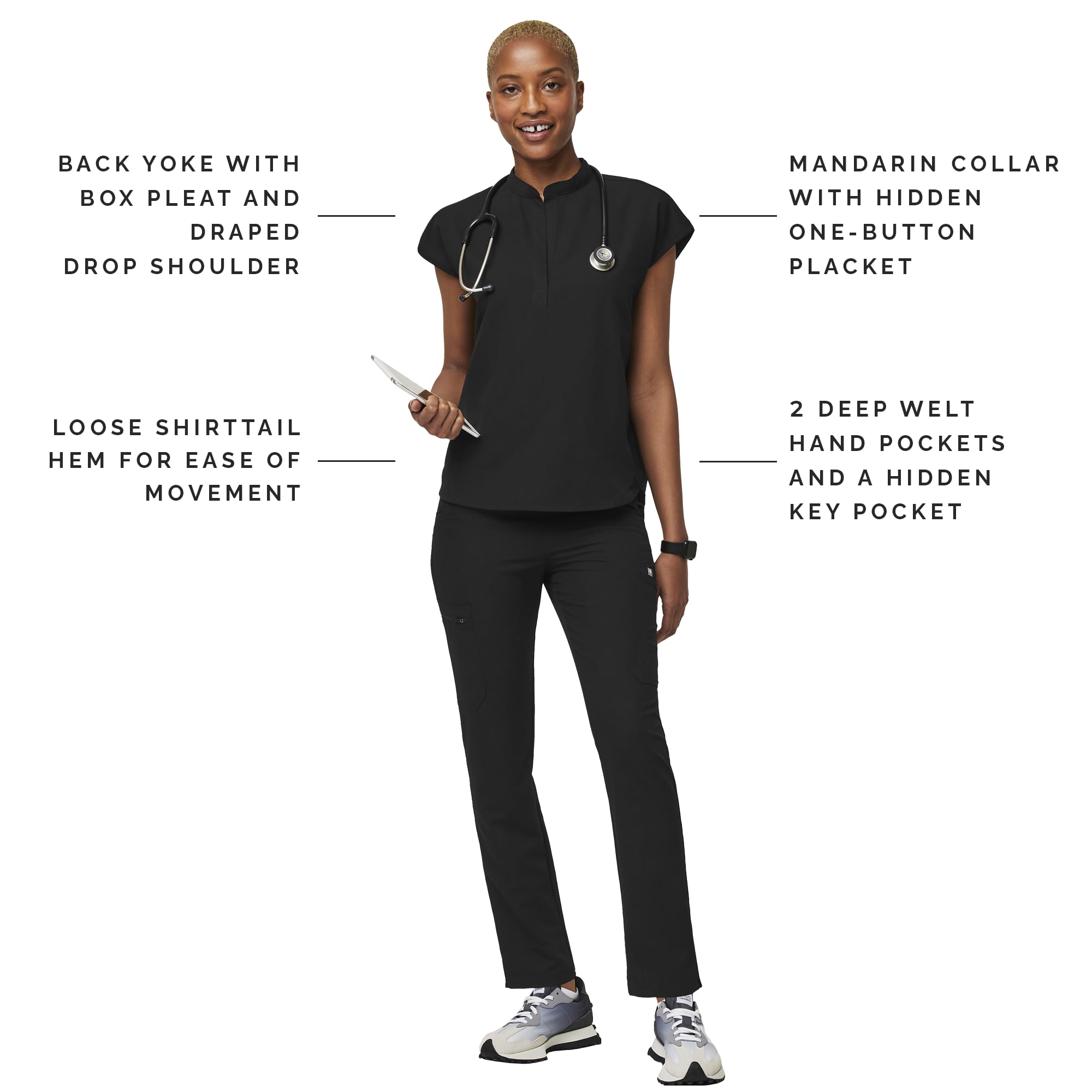 - SUPERIOR FIT AND DURABILITY — Made with FIGS’ proprietary FIONx fabric, these stylish women’s scrub tops were designed with durable four-way stretch fabric, moisture-wicking, anti-wrinkle, and ridiculously soft properties. Enjoy ultimate comfort wearing this women’s medical scrub top.